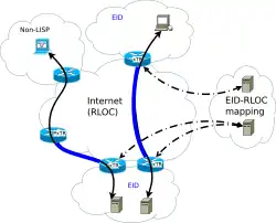 - ↑ (en) Dino Farinacci et al., « The Locator/ID Separation Protocol (LISP) », Request for comments no 6830,