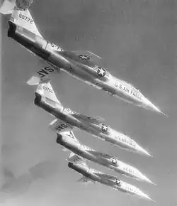 - En service avec l'USAF de 1958 à 1960, avant d'être transférés vers des unités de l'Air National Guard jusqu'en 1963, ils ont ensuite repris le service avec les 319th et 331st Fighter Interceptor Squadrons. Les appareils du 319th ont été remotorisés avec des J-79-GE-19 qui, avec leurs 8 100 kpg, leur permettaient d'atteindre un plafond opérationnel de 22 250 mètres. Tous les F-104A et B ont été retirés de l'USAF en 1969.
