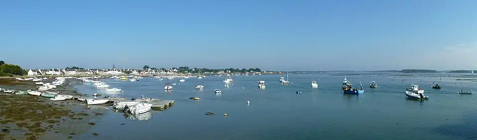 Le bourg de Locmariaquer vu du nord le long de la Rivière d'Auray.
