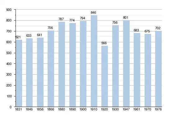 - Sources : INS, Rem. : 1831 jusqu'en 1970 = recensements, 1976 = nombre d'habitants au 31 décembre[3].