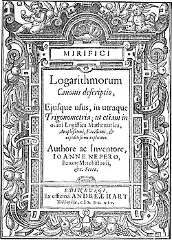 Vers la fin du XVIe siècle, le développement de l'astronomie et de la navigation maritime d'une part et les calculs bancaires d'intérêts composés d'autre part poussent les mathématiciens à chercher des méthodes de simplification de calculs et en particulier le remplacement des multiplications par des sommes[4]. L'invention de tables dites logarithmique permettant de faciliter les calculs comportant des produits est l’œuvre de mathématiciens du début du XVIIe siècle: Jost Bürgi[5], Neper et Briggs[6], travail poursuivi par Johannes Kepler[7], Ezechiel de Decker et Adriaan Vlacq[5].