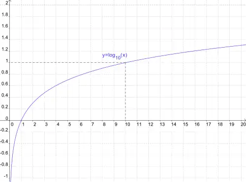 Le logarithme décimal ou log10 ou simplement log (parfois appelé logarithme vulgaire) est le logarithme de base dix. Il est défini pour tout réel strictement positif x.