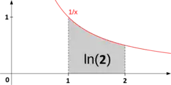 Le logarithme népérien de 2 vu comme une aire sous la courbe de la fonction