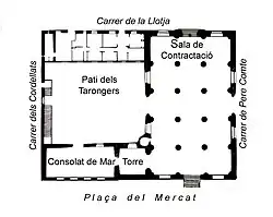- la Salle des colonnes ( Saló Columnari ou Sala de Contractació), à droite de la tour,