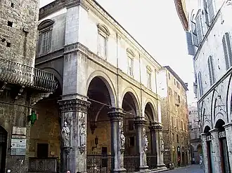 La Loggia della Mercanzia est la loggia du commerce de la ville de Sienne, qui donne sur l'arrière de la Piazza del Campo, à la croisée des Via Banchi di Sopra, Via Banchi di Sotto et Via di Città.
