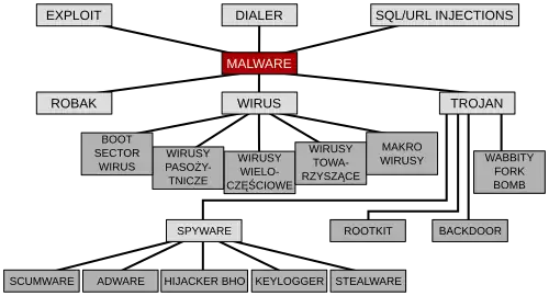 De nos jours, le terme « virus » est souvent employé, à tort, pour désigner toutes sortes de logiciels malveillants. En effet, les maliciels englobent les virus, les vers, les chevaux de Troie, ainsi que d'autres menaces. La catégorie des virus informatiques, qui a longtemps été la plus répandue, a cédé sa place aux chevaux de Troie en 2005.
