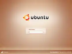 Écran de pré-login d'Ubuntu 8.04, où s'affiche d'abord le champ du nom d'utilisateur puis celui du mot de passe.