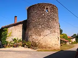 La fuie ronde qui a perdu sa toiture signe l'importance du fief doté de droit de haute et basse justice (et son année de construction correspond au document royal de leur attribution). Le portail est surmonté de créneaux et donne dans une basse-cour entourée de communs remaniés et transformés en logements.