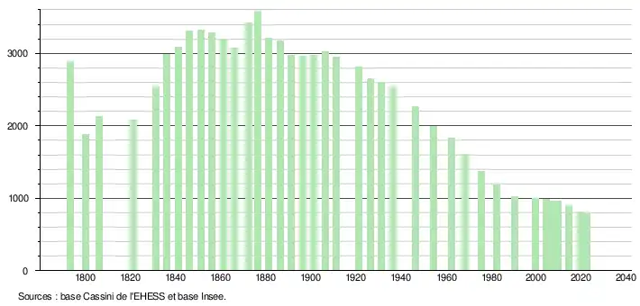 - ↑ Fiches Insee - Populations de référence de la commune pour les années 2006, 2007, 2008, 2009, 2010, 2011, 2012, 2013, 2014, 2015, 2016, 2017, 2018, 2019, 2020, 2021 et 2022.