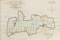 - ↑ « Vente par licitation de la forêt de Beffou », Journal Le Bas-Breton : politique, agricole et littéraire, (lire en ligne, consulté le ) et « Ventes et Adjudications », Journal Le Temps, (lire en ligne, consulté le ).