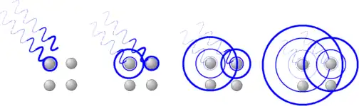 Lorsqu'un monocristal est bombardé par des rayons X, ceux-ci frappent les atomes avec des phases différentes : ils parcourent des chemins optiques plus ou moins longs. Les rayons X, comme toutes les ondes électromagnétiques, provoquent des changements dans les niveaux d'énergie des électrons en mouvement autour des noyaux. L'apport d'énergie induit provoque une réémission d'ondes électromagnétiques de même fréquence : ce phénomène est appelé « diffusion Rayleigh ».