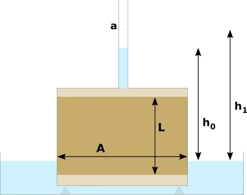 - : le gradient hydraulique, où ΔH est la différence des hauteurs piézométriques en amont et en aval de l'échantillon, L est la longueur de l'échantillon.