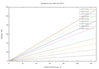 La loi de Gustafson exprime l'accélération théorique en latence de l'exécution de toute la tâche à temps d'exécution constant T, ce qui donne