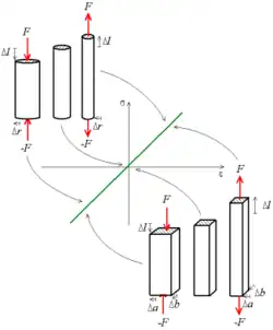 Dans le cas d'un matériau isotrope, si l'on reprend en compte le coefficient de Poisson , la loi de Hooke devient :