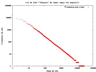 Zipf avait entrepris d'analyser une œuvre monumentale de James Joyce, Ulysse, d'en compter les mots distincts et de les présenter par ordre décroissant du nombre d'occurrences. La légende dit que :