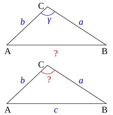 La loi des cosinus généralise le théorème de Pythagore, puisqu'elle permet d'énoncer que l'angle γ est droit (autrement dit cos γ = 0) si et seulement si c2 = a2 + b2.