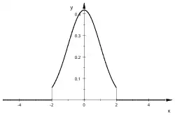 Loi normale centrée réduite tronquée en 2.Comparaison de deux lois normales centrées réduites tronquées l'une en 1,5 (rouge) l'autre en 2,5 (bleue).