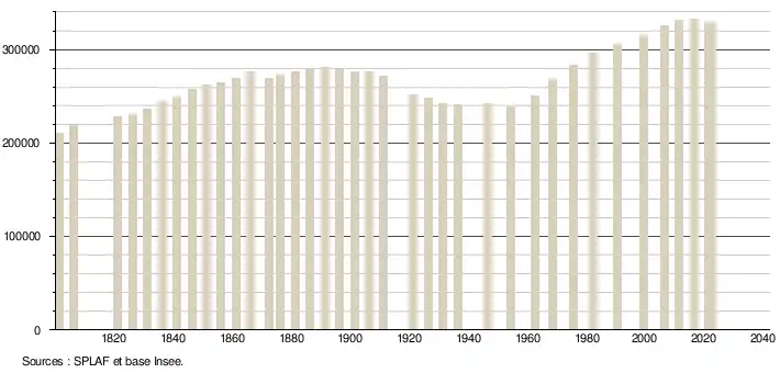 - ↑ Fiches Insee - Populations de référence du département pour les années 2006, 2007, 2008, 2009, 2010, 2011, 2012, 2013, 2014, 2015, 2016, 2017, 2018, 2019, 2020, 2021 et 2022