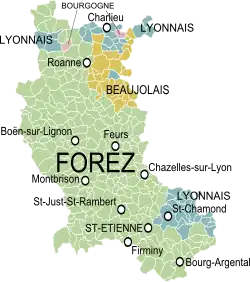 Après la disparition de l'Empire romain d'Occident, le Forez, lié au Lyonnais et au Beaujolais, faisait partie du royaume Burgonde, puis de Royaume de Bourgogne. Un comté de Forez se créé par division du comté de Lyon lors du Permutatio (1173). Au XVIe siècle, le Forez entre dans le domaine royal puis intègre la Généralité de Lyon.