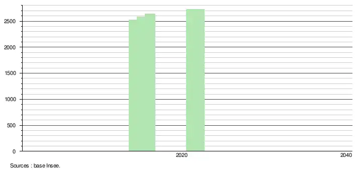 En 2022, la commune comptait 2 724 habitants[Note 4], en évolution de +3,18 % par rapport à 2016 (Mayenne : −0,73 %, France hors Mayotte : +2,11 %).