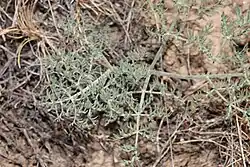 C'est une herbacée vivace robuste issue d'une racine pivotante allongée et épaissie ou d'une base tubéreuse ou en forme de collier, coiffée d'une couronne racinaire simple, souvent souterraine. La tige est ramifiée près de la base, d'une hauteur de 12 à 50 cm, étalée ou ascendante. Les feuilles sont toutes basales, groupées près du sol, finement disséquées, grisâtres, poilues à laineuses ; les segments ultimes ne ressemblent pas à des folioles, et sont petits, étroits et pennés[1].