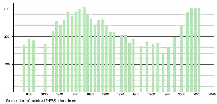 - ↑ Fiches Insee - Populations de référence de la commune pour les années 2006, 2007, 2008, 2009, 2010, 2011, 2012, 2013, 2014, 2015, 2016, 2017, 2018, 2019, 2020, 2021 et 2022.