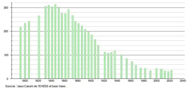 - ↑ Fiches Insee - Populations de référence de la commune pour les années 2006, 2007, 2008, 2009, 2010, 2011, 2012, 2013, 2014, 2015, 2016, 2017, 2018, 2019, 2020, 2021 et 2022.