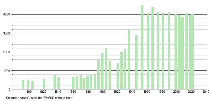 - ↑ Fiches Insee - Populations de référence de la commune pour les années 2006, 2007, 2008, 2009, 2010, 2011, 2012, 2013, 2014, 2015, 2016, 2017, 2018, 2019, 2020, 2021 et 2022.