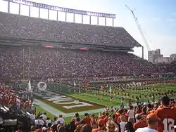 Le plus grand drapeau déployé en 2005. La Tower illuminée le . L'équipe en formation I. Un supporter des Longhorns.