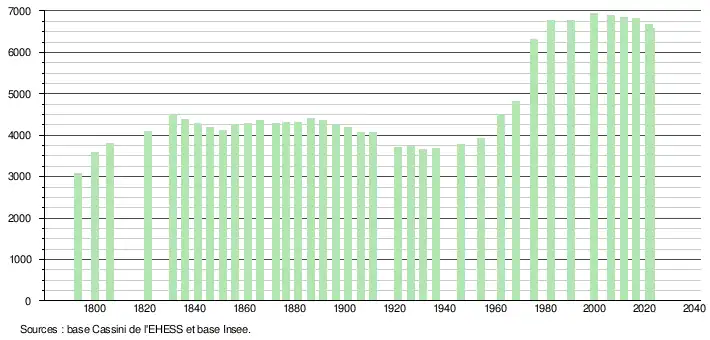 - ↑ Population municipale de référence en vigueur au 1er janvier 2025, millésimée 2022, définie dans les limites territoriales en vigueur au 1er janvier 2024, date de référence statistique : 1er janvier 2022.