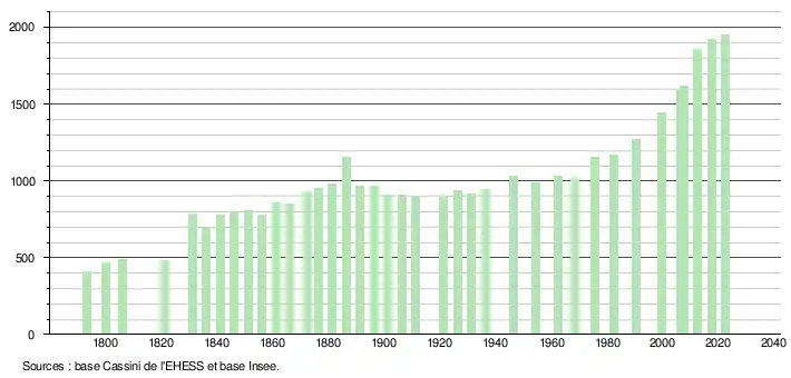 - ↑ Fiches Insee - Populations de référence de la commune pour les années 2006, 2007, 2008, 2009, 2010, 2011, 2012, 2013, 2014, 2015, 2016, 2017, 2018, 2019, 2020, 2021 et 2022.