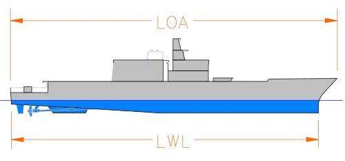 Ceci inclut les éventuels espars tels que le beaupré ou une queue de malet ainsi que les balcons. En revanche, les grues ne sont en général pas incluses.