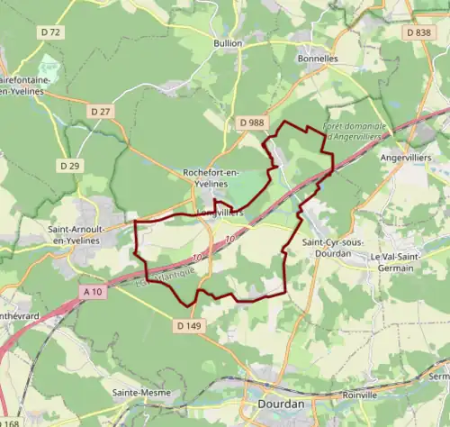 Les communes limitrophes sont : Saint-Arnoult-en-Yvelines à l'ouest, Rochefort-en-Yvelines au nord-ouest, Bonnelles au nord et de trois communes de l'Essonne (Dourdan au sud et Angervilliers et Saint-Cyr-sous-Dourdan à l'est).