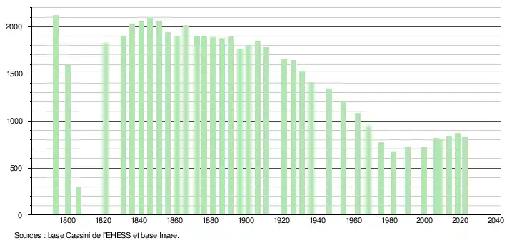 - ↑ Fiches Insee - Populations de référence de la commune pour les années 2006, 2007, 2008, 2009, 2010, 2011, 2012, 2013, 2014, 2015, 2016, 2017, 2018, 2019, 2020, 2021 et 2022.