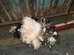 - pel, qui est le poil court et doux trouvé sur la couche intérieure du manteau de laine, et