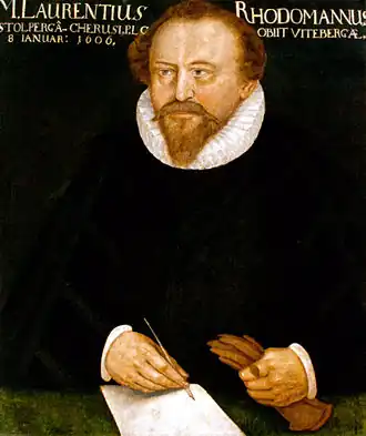 - (de) Cet article est partiellement ou en totalité issu de l’article de Wikipédia en allemand intitulé « Lorenz Rhodomann » (voir la liste des auteurs).