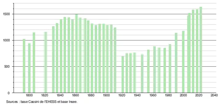 - ↑ Fiches Insee - Populations de référence de la commune pour les années 2006, 2007, 2008, 2009, 2010, 2011, 2012, 2013, 2014, 2015, 2016, 2017, 2018, 2019, 2020, 2021 et 2022.