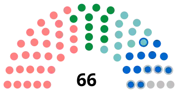 2. Les pastilles de couleur représentent les élus selon leur appartenance à un groupe politique après l'élection. Les anneaux de couleur indique un changement de groupe politique au cours du mandat.