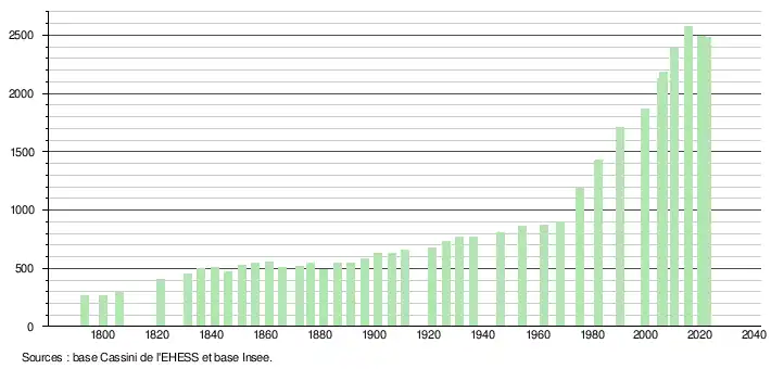 - ↑ Fiches Insee - Populations de référence de la commune pour les années 2006, 2007, 2008, 2009, 2010, 2011, 2012, 2013, 2014, 2015, 2016, 2017, 2018, 2019, 2020, 2021 et 2022.