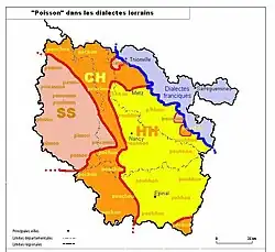 Après 1870, les membres de l'académie Stanislas de Nancy ont relevé 132 variantes de patois lorrain entre Thionville au nord et Rupt-sur-Moselle au sud, ce qui signifie que les variantes principales se déclinent en sous-variantes.