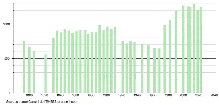 - ↑ Fiches Insee - Populations de référence de la commune pour les années 2006, 2007, 2008, 2009, 2010, 2011, 2012, 2013, 2014, 2015, 2016, 2017, 2018, 2019, 2020, 2021 et 2022.