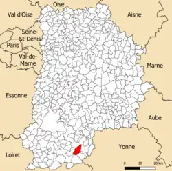 La commune est située à environ 18,8 kilomètres à l’est de Nemours[Carte 1].