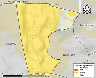 Le retrait-gonflement des sols argileux est susceptible d'engendrer des dommages importants aux bâtiments en cas d’alternance de périodes de sécheresse et de pluie. 89,4 % de la superficie communale est en aléa moyen ou fort (44,5 % au niveau départemental et 48,5 % au niveau national). Sur les 151 bâtiments dénombrés sur la commune en 2019, 151 sont en aléa moyen ou fort, soit 100 %, à comparer aux 75 % au niveau départemental et 54 % au niveau national. Une cartographie de l'exposition du territoire national au retrait gonflement des sols argileux est disponible sur le site du BRGM[37],[Carte 3].