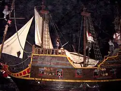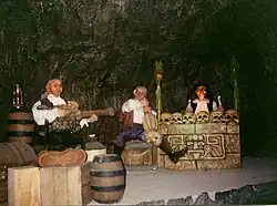 L'histoire se déroule en plusieurs tableaux, depuis le repas du gouverneur du Mexique et du corsaire John Speedy, en passant par les pillages dans le temple Maya, jusqu'à l'attaque du fort espagnol Cabo Real par les pirates, dont un des squelettes nargue les visiteurs.