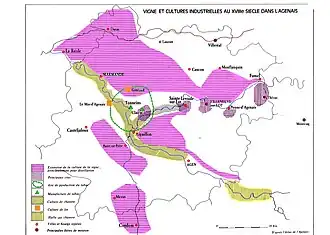 La vigne couvre plus de 8 000 ha, livre près de 400 000 hl ce qui représente près de 5 % du chiffre d’affaires de l’agriculture départementale, soit sensiblement la même chose que le blé. Grâce aux efforts des viticulteurs locaux la vigne et le vin entrent dans une production de qualité bénéficiant du label AOC (Appellation d’origine contrôlée). Trois zones dominent tant pour les superficies que pour les quantités : le pays de Duras, les côtes du Marmandais (Beaupuy et Cocumont) et, surtout, le vignoble de Buzet. Toutes ont en commun d’être animées par des caves coopératives qui ont su faire progresser la qualité, ouvrir de nouveaux débouchés, mais sont soumises à une vive concurrence. Ainsi, celles de Cocumont et Marmande ont dû fusionner et opérer des restructurations douloureuses. Dernières arrivées en tant qu'AOC (depuis le ) : les côtes de Brulhois, cette appellation étant partagée avec le Tarn-et-Garonne et une petite partie du Gers.