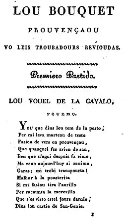 L'anthologie s'ouvre sur un « AVERTISSAMEN » et une première phrase optimiste : « Leis Musos prouvençalos, lon-temps assoupidos, sembloun vouille si revilla »[2], écrite en provençal maritime et dans une graphie cultivée[3]