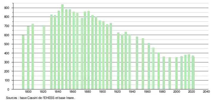 - ↑ Fiches Insee - Populations de référence de la commune pour les années 2006, 2007, 2008, 2009, 2010, 2011, 2012, 2013, 2014, 2015, 2016, 2017, 2018, 2019, 2020, 2021 et 2022.