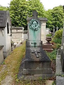 Il est inhumé à Paris au cimetière du Père-Lachaise (47e division), où sa sépulture est ornée de son portrait en médaillon en bronze par William Henri Pecou (1889)[2],[3],[4].