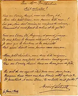 - ↑ En remerciement de l'accueil reçu au Pellerin, Louis Frechette dédiera à son hôtesse un long poème consacré à ce charmant petit port des bords de Loire. Ce texte paraît en 1891 au Québec dans le recueil Feuilles volantes et en France dans la Revue des provinces de l'Ouest (août 1891), l'adresse y est plus complète : « À Mme Adine Riom, de Nantes, en souvenir d'une charmante hospitalité ». En 1889, une petite fille naît chez le couple Fréchette, on la prénomme Pauline Adine.