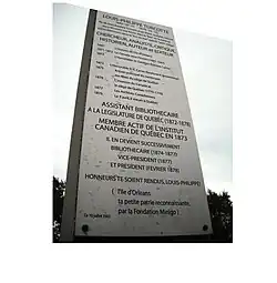 Avant d'être élu président de l'Institut, il avait écrit un livre sur l'invasion américaine du Canada de 1775. Le , il meurt à Québec et est inhumé dans son village natal.